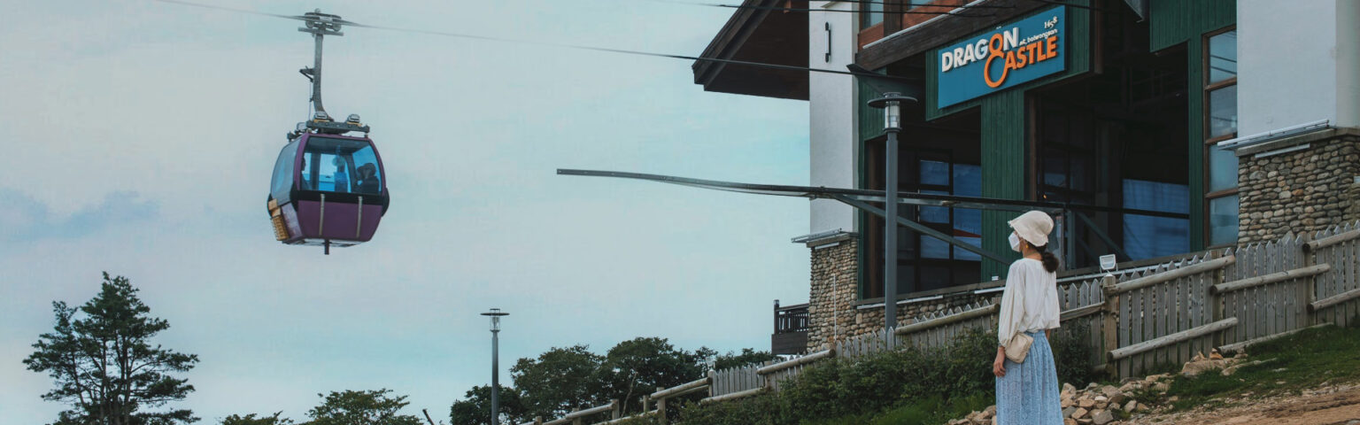 발왕산 케이블카는 힘겹게 등산을 하지 않고도 아름다운 풍경을 한눈에 내려다 볼 수 있는 가장좋은 방법이다. 용평리조트 드래곤플라자 탑승장에서 관광곤돌라를 타고 왕복 7.4km를 18분간 이동하면 발왕산 정상에 도착한다. 100대의 8인승 캐빈이 운영되며, 캐빈 안에서 원하는 음악을 블루투스로 연결하여 들을 수 있다. 듣고 싶은 음악과 더불어 웅장한 대자연의 풍경을 감상하면 이보다 더한 낭만이 있을까. 가을에는 울긋불긋한 단풍 물결을 음미할 수 있는 최고의 명소가 된다. 케이블카는 KTX 연계 또는 평창 시티투어를 이용하게 되면 가격 할인을 받을 수 있다. 뛰어난 안정성과 속도감 덕분에 어르신과 아이들이 편안한 마음으로 이용할 수 있다는 게 또 하나의 장점이기도 하다. 야간에도 운행하기에 발왕산 정상이나 케이블카 안에서 일몰과 별이 빼곡한 밤하늘을 감상하는 낭만적인 경험도 놓치지 말자.