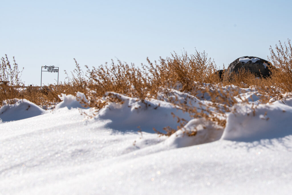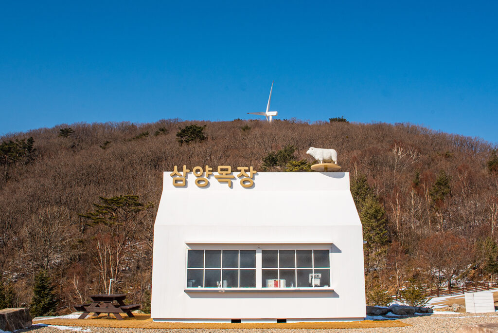 오색빛깔 무지개 꽃밭에는 하얀 눈꽃이 피었다. 다른 계절에는 예쁜 꽃들이 여행자를 반겼겠지만, 겨울에는 눈밭이 되어 있다. 최근에 새로 지어진 양 조형물 건물은 멋진 포토존이 된다. 바로 옆 소 방목지에는 추위도 아랑곳하지 않고 사람들을 향해 관심을 보이는 소들도 볼 수 있다. 현재 양몰이 공연과 송아지 우유 주기 등 동물 체험코스는 운영이 제한되어 있고 양 방목지에는 양을 볼 수 없지만 평온함을 느낄 수 있는 풍경을 보는 것만으로도 충분하다.