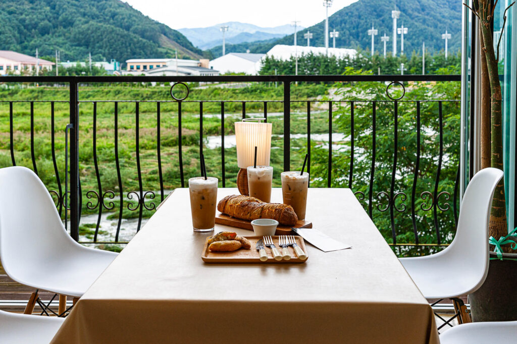 해발 500m 언저리 오대천이 흘러가는 길가에 유럽풍 건물은 평창을 찾는 여행자들의 커피 문화 체험 공간이다. 같은 원두지만 내리는 사람마다 맛이 다른 핸드드립 커피 체험을 비롯해 원두를 로스팅 해서 나만의 커피콩으로 만들기까지 그룹으로 체험을 진행한다. 지역 생산물인 감자를 넣은 감자빵은 특허를 받을 정도로 그 맛도 인정받아 사람이 많은 주말이면 구매 개수를 제한할 정도로 인기몰이 중이다.