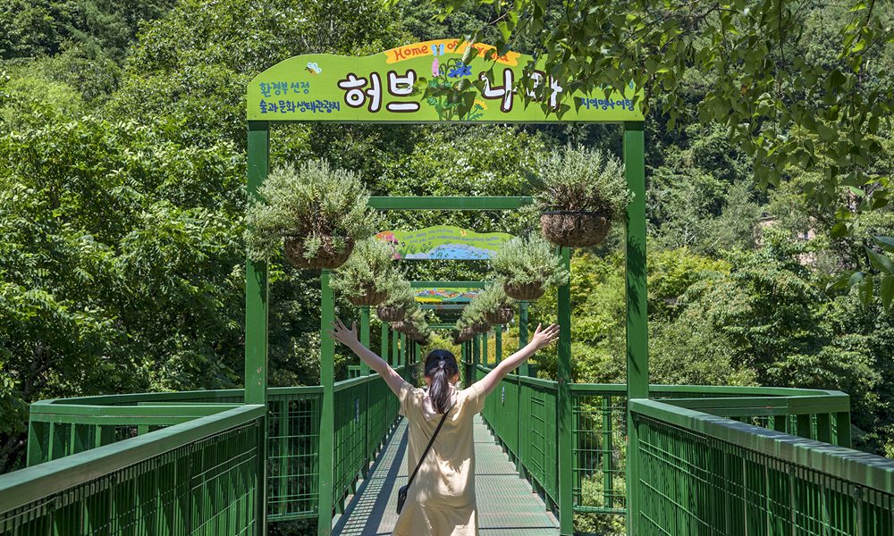 자연이 건네는 향기 속에서 심신을 재충전하고 싶다면 허브나라 농원에 가보는 건 어떨까. 1993년에 문을 연 허브나라는 우리나라 최초의 허브 관광농원이며 로즈마리, 라벤더, 캐모마일 등 100여종 이상의 허브를 1만여 평의 밭에서 손수 재배하고 있다. 봉평 흥정계곡에 위치하고 있어 허브향과 함께 시원한 광경을 누릴 수 있다는 것도 또 하나의 특징이다. 농원 내에는 아름답게 가꾼 정원, 유리온실, 허브 먹거리를 즐길 수 있는 가든카페, 레스토랑 자작나무집, 허브박물관, 허브나라 펜션 등 다양한 시설이 마련되어 있다.