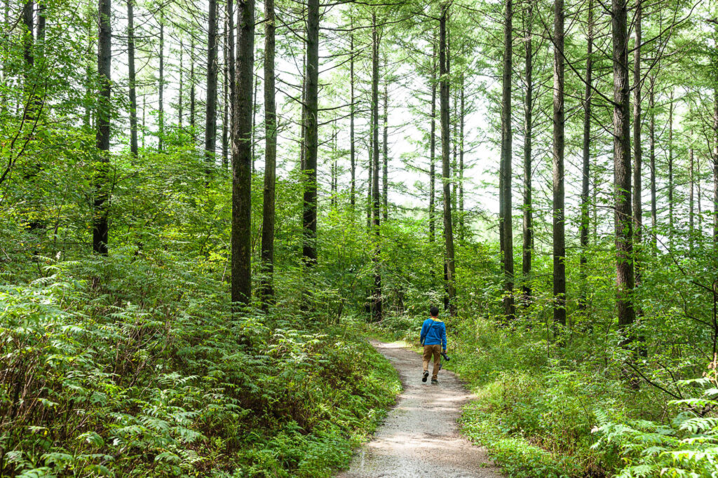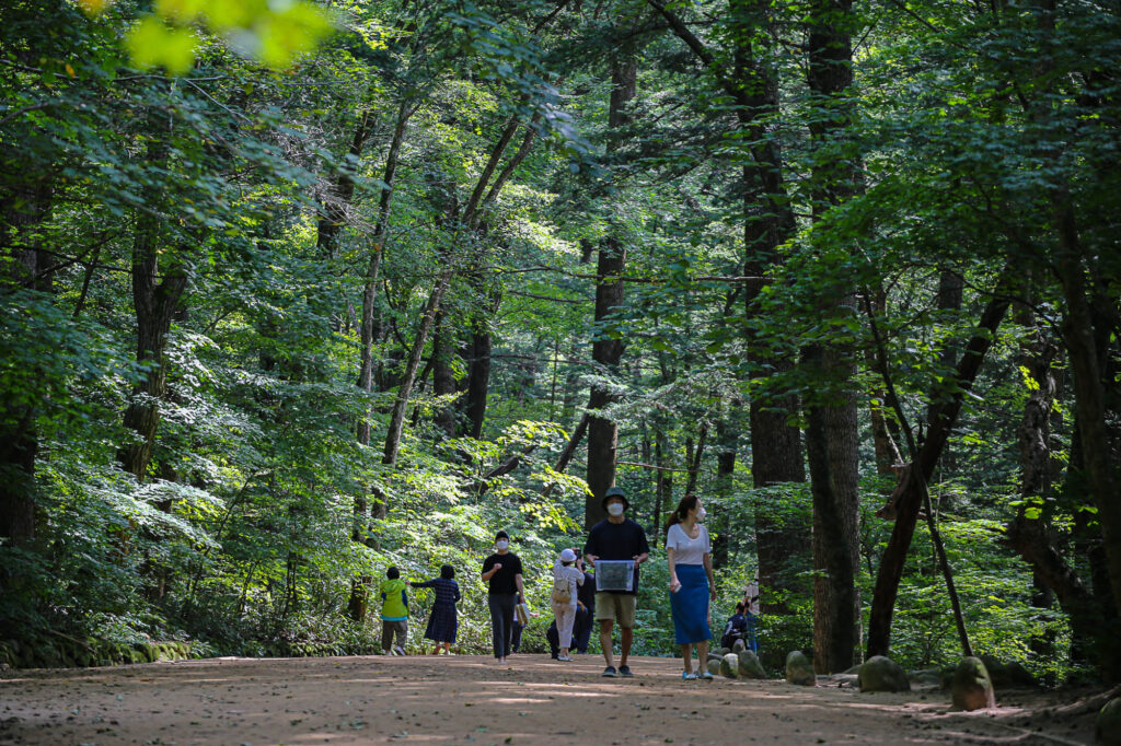 다섯 번째, 대관령 국민의 숲 트레킹 코스는 생체리듬에 가장 좋은 해발 700m 대관령 자락(구) 대관령휴게소 인근에 조성된 곳이다. 트레킹 코스 앞에 주차장이 있다는 것도 장점이다. 숲길에 들어서면 길게 뻗은 전나무, 주목, 독일가분비나무, 잣나무, 자작나무 등이 군락을 이루고 있다. 피톤치드 가득한 침엽수 길을 따라 걷는 것만으로 힐링이 된다. 가벼운 차림으로 트레킹을 즐길 수 있어 아이들과 함께 다녀와도 좋은 코스다. 산책로 주변도 잘 정리되어 있고, 경사가 완만해 가을철 걷기 여행지로 손색이 없다.