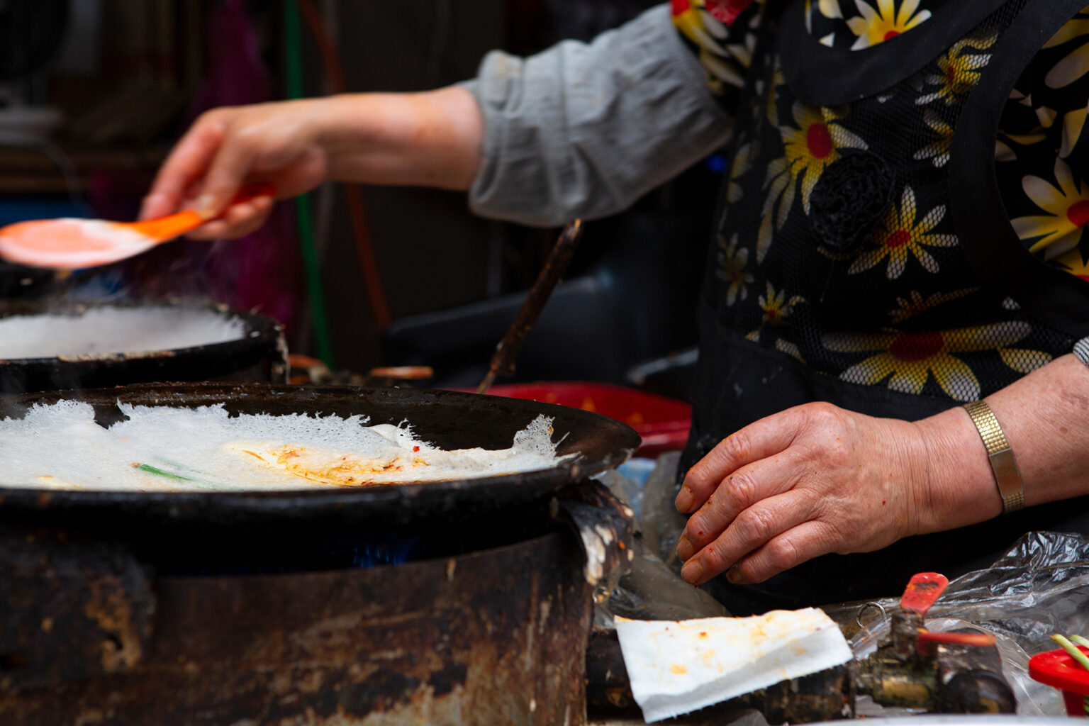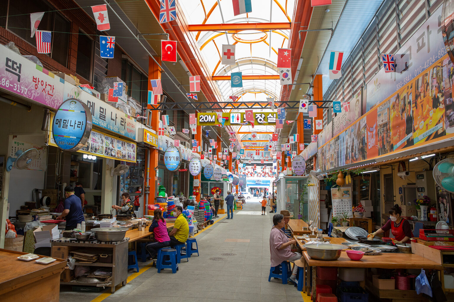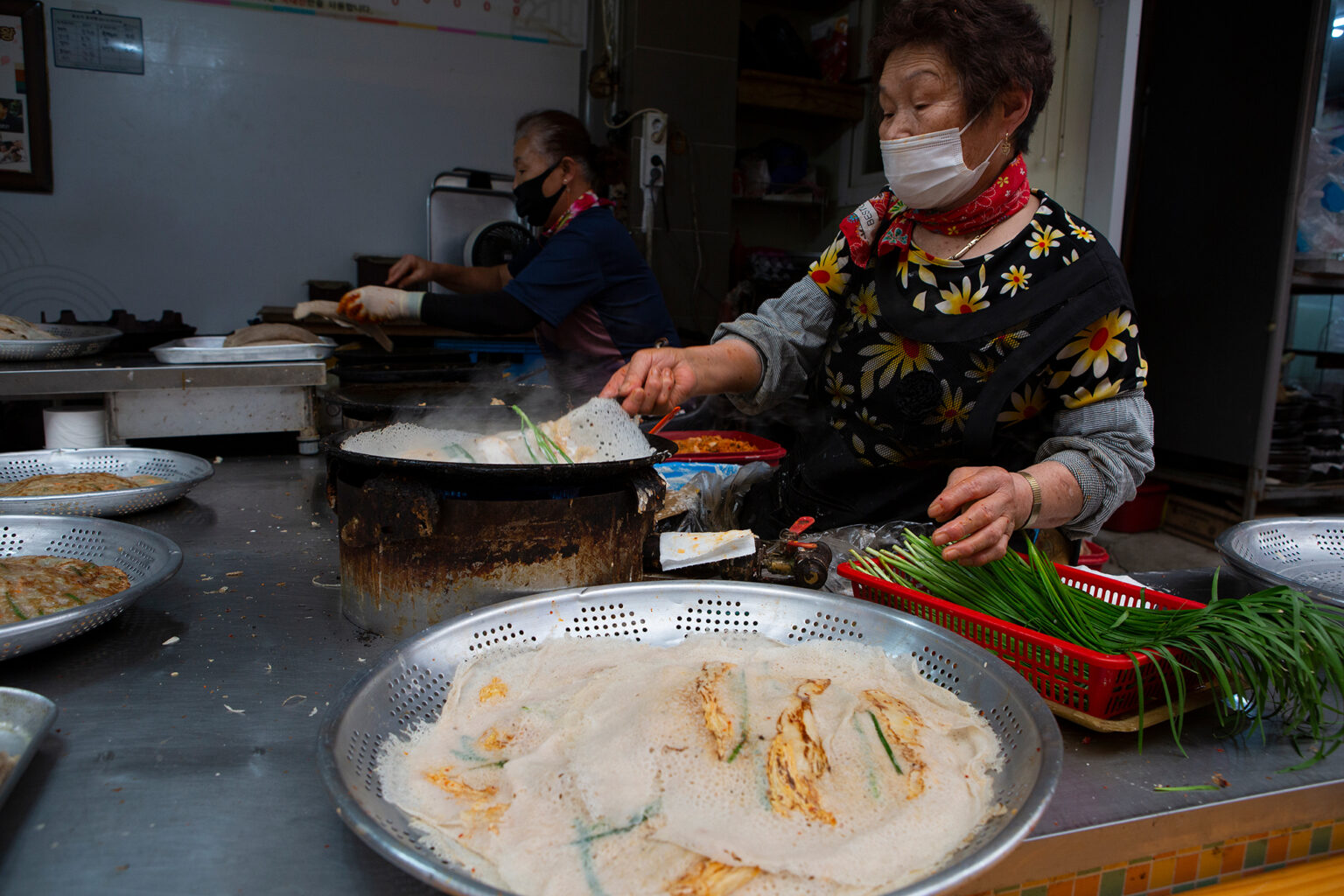 시장의 부침 집마다 조금씩 다르지만 모두 맛있다. 그중에서도 메밀나라의 메밀전병은 유난히 마음에 들었다. 구수한 메밀과 매콤 새콤한 김칫소가 기막히게 어우러진다. 담백한 맛을 즐겨 찾는 장년층과 자극적인 맛에 열광하는 청년층, 모두의 입맛을 사로잡을 만하다. 메밀가루에 콩 비지를 넣은 메밀비지전도 별미다. 탱글탱글하게 차지면서도 고소한 맛이 메밀부침과는 또 다른 매력이 있다. 메밀나라의 ‘3대천왕세트’를 주문하면 메밀전병과 감자전 등 이집의 모든 메뉴를 맛볼 수 있다.