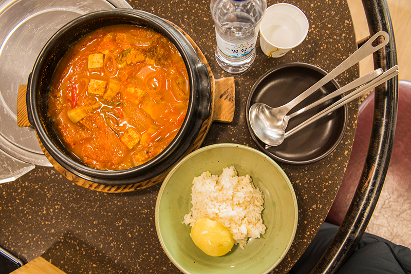 2년 숙성 묵은지: 토굴에서 숙성시킨 묵은지를 사용하여 국물이 텁텁하지 않고 깔끔하면서도 깊은 산미를 자랑합니다.