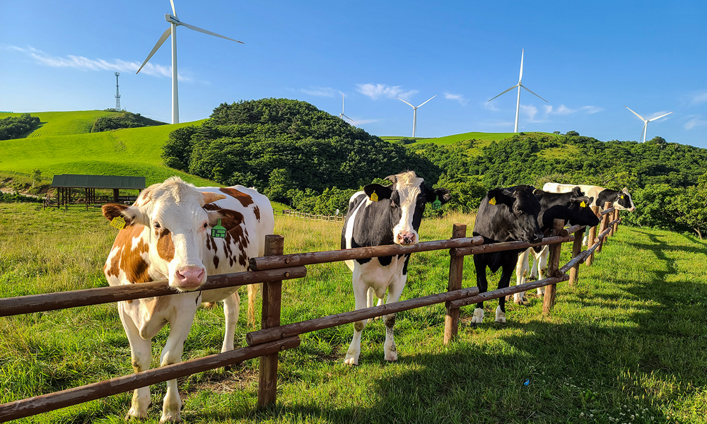 해발 850m에서 1,470m에 이르는 청정 고산지대에 위치한 삼양라운드힐은 약 600만 평 규모의 아시아 최대 유기 초지 낙농 목장으로, 드넓은 초원과 자유롭게 방목되는 동물들, 그리고 풍력발전기가 어우러진 대한민국 대표 친환경 관광 명소입니다.