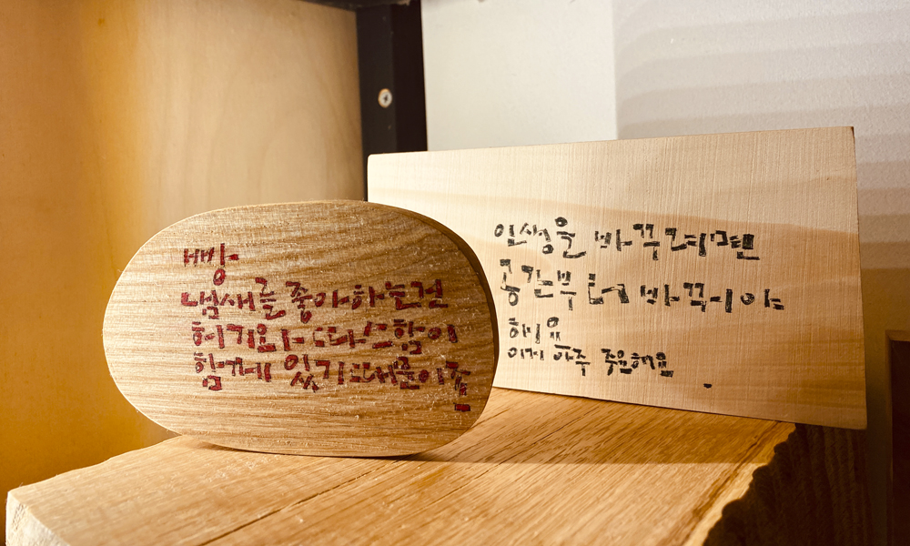 수제 목공 인테리어가 만들어내는 따뜻한 분위기 속에서
